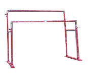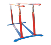 Uneven BarsSpecification :- uneven bar made of 2 square pipe adjustable height on both sides with side stay wires coupling, chain etc. With fiber bars. |