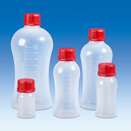 NEW! The laboratory bottle from Central Optical Works is optimized for storage and sample collection of liquids in the lab. The innovative design features a molded, ergonomic grip, highly accurate graduations (± 5%), and provides protection against liquid leakage. Product Features: Excellent handling - The slim waist of the Central Optical Works lab bottles greatly improves handling. The molded volume graduations provide texture for an enhanced grip, especially when working with gloves. Leakproof* - The optimized sealing system of the bottle thread and screw cap form a reliable sealing system without the need of a cap liner that can wear, corrode or cause contamination. Easy readability - With double-sided molded graduations, the volume inside the bottle is easy to read, even during use. Robust and versatile - Manufactured from shatterproof polypropylene with good chemical resistance, the VITgrip™ lab bottles are suitable for contact with foodstuffs (according to regulation EU No. 10/2011). The hydrophobic material and lack of dirt-catching edges allow for smooth pouring of liquids and easy cleaning. Autoclavable at 121°C (2 bar) according to DIN EN 285. Tamper-evident closure - With a ring that tears off upon first opening of the closed bottle, it reliably signals if the bottle is still sealed before opening. After the ring is torn off, the closure can be used as a regular screw cap.